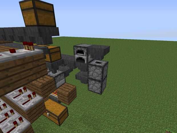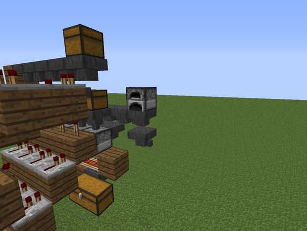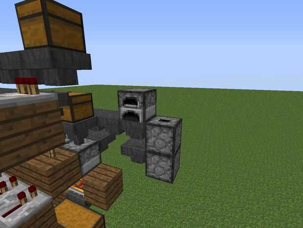 En primer lugar usted necesita poner un horno en la parte superior la tolva de último en la línea que apunta hacia la izquierda y luego abajo que esa tolva pone otra tolva apuntando a la derecha. Entonces usted quiere colocar dos goteros al lado de las dos tolvas debajo el horno. Después otra tolva por encima de los dos goteros y lo hacia en el horno.
