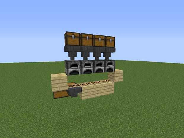 Para este paso necesita colocar los hornos justo encima de las vagoneta con pistas. A continuación, después de que ha hecho esto, tolvas de lugar sobre los hornos señalando en la parte superior de ellos y luego cofres lugar encima de las tolvas. Tenga en cuenta que cuando usted pone el pecho, usted tendrá que han atrapado pechos entre los pechos normales por lo que no se conectan.