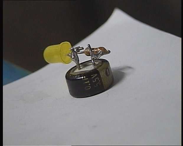 Super condensador con de 100 000 micro faradios está conectado al led con resistor, condensador se carga con corriente continua para un vil, unos 30 segundos y luego el wil led brillo alrededor de 5 minutos Aquí teneis fotos de cómo construir esta