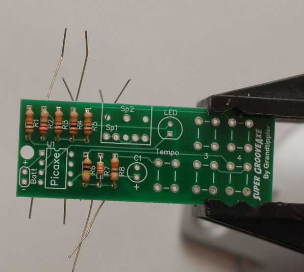 Coloque el resistor de 220 ohmios (rojo - rojo - marrón) en R2