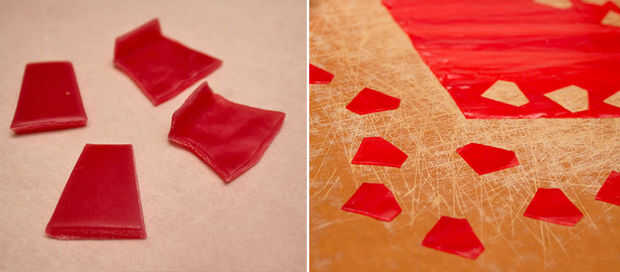 Comienza por cortar la fruta Roll Ups o regaliz en las formas del super héroe cabos y emblemas de pecho. Doblar el borde más estrecho del cabo hacia arriba para que se acople a tus cake pops. (Si usted está usando regaliz, se necesita aplanar el caramelo con un rodillo antes de cortar las formas.)