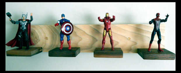 Por lo tanto, hemos decidido hacer un superhéroe medalla de suspensión para su pared. Con su orientación y ayuda, hemos diseñado una placa que colgaría en la pared, con plataformas para algunas de sus figuras de acción de 3" y mostrar (y quizás proteger) sus amados medallas de académicos, fútbol, música... etc.