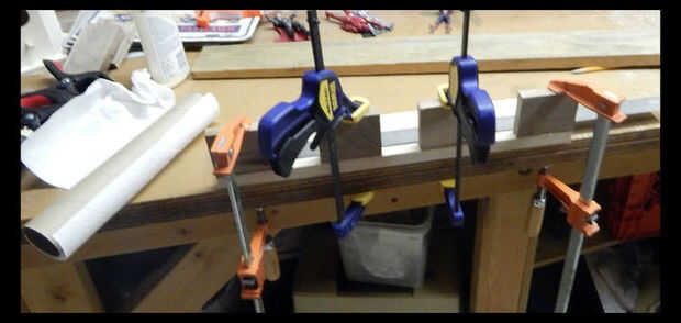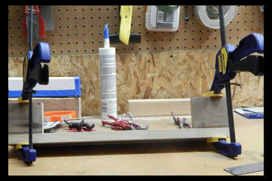 A continuación, hemos pegado las plataformas para la placa trasera (placa). Era agradable tener aquí mi ayuda de mi hijo porque realmente tomó más de dos manos para hacerlo. ¿Dónde estaba Doc pulpo cuando lo necesitaba? Después de todo fue afianzado con abrazadera, mi hijo perforados agujeros en la parte posterior del tablero trasero en cada plataforma e inserta dos 2" tornillos en cada junta simétricamente.