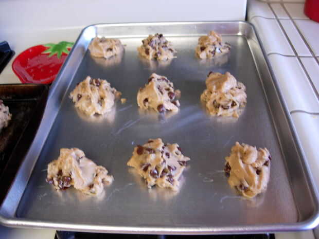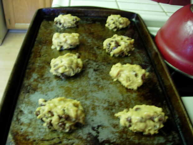 Una vez que se mezcla para arriba, estás en el negocio. Ahora vamos a configurar en las galletas. Asegúrate de que has rociado con algunas Pam o algo o tal vez algún papel de pergamino. Así, no es ninguÌ n burning.