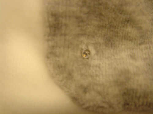 Para indicar que está funcionando el reproductor de mp3, ataremos el LED en la ventana del IPod. Hacer un agujerito abajo a la izquierda de la ventana y conectar el LED con pegamento para tela. Marca (+) y (-) en la tela para indicar cual es la pata larga para la conexión positiva y que es la pata corta de la conexión negativa. Doble las patas del LED y coser las patas con hilo conductor.