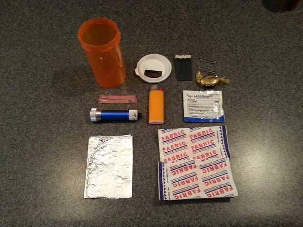 * Pesca anzuelos, plomos de pesca y 20 pies de línea de prueba de 4 libras (Asegúrese de que sabe cómo hacer sus nudos!) en una pequeña bolsa de plástico