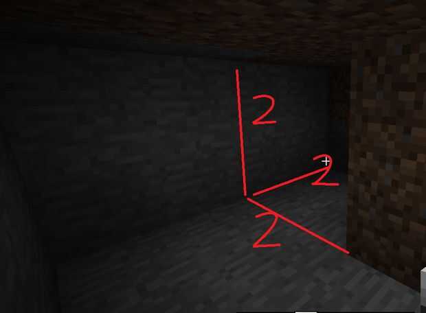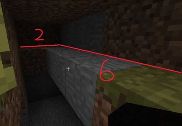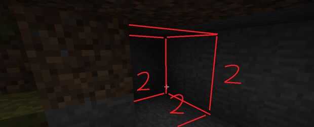Después de eso necesita sacar 2 * 2 * 2 hendiduras en los laterales de la cueva. Estos son los puntos donde no irá sus pistones pegajosos, escatimar aquí.