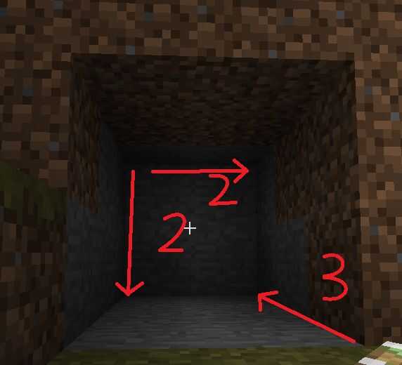 Después de esta excavación le tiene una cueva que entra a 3 cuadras de la montaña, con 2 * 2 * 2 espacios a cada lado, en la parte delantera hay deben ser un canal de 2 bloques en el techo, con un área de 2 * 6 ahuecado de redstone.