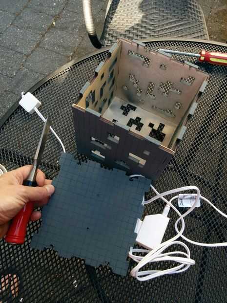 No dude en utilizar cualquier otro tipo de luz que desee. Los agujeros en la placa inferior se quedaron pequeñas a propósito para que podría llenar fácilmente con un poco de pegamento de madera / mezcla de aserrín. Ten en cuenta que el interior de esta caja se cubrirá con plástico, para que cualquiera las luces que utilices no debe generar mucho calor. He construido uno con una lámpara incandescente más pequeña en él, y parece muy bien.