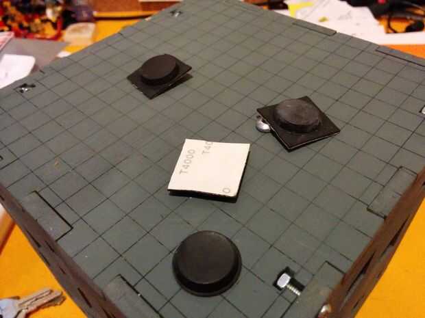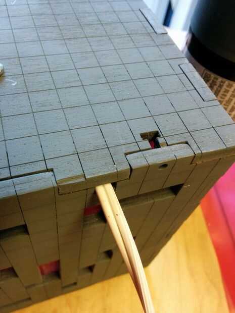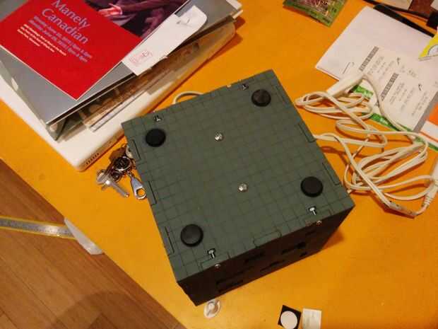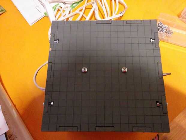 Con el plástico de la instalación, tenemos unos más pequeños detalles a cuidar. En primer lugar, decidí pegar un poco de Velcro en la caja de alimentación mini para evitar vibraciones alrededor de dentro. Luego pase el resto de la alimentación hacia fuera a través de la pequeña corte. En este punto, usted presión cabe la parte inferior de. Esto es probablemente suficiente a menos que tengas niños realmente ásperos. Si lo haces, puede que desee poner los 4 tornillos de 4 x 40 1/2".
