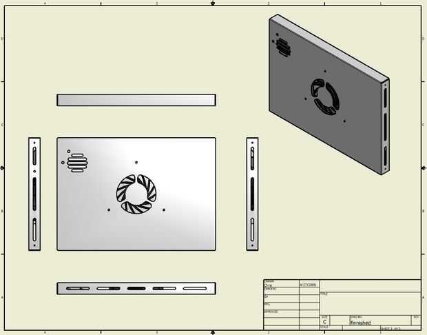 Los siguientes son los dibujos de CAD diseñado. El diseño que surgió permite el cojín para sentarse en mi regazo y dirige el flujo de aire hacia la parte posterior y lados lejos de mí. Esa manera allí no es y aire caliente se dirige hacia mí. Si había utilizado un ventilador normal de PC, el aire todavía sería dirigido justo en mi regazo y tendría que elevar la almohadilla para permitir el flujo de aire disipar. Mi diseño de elevación no es necesaria.