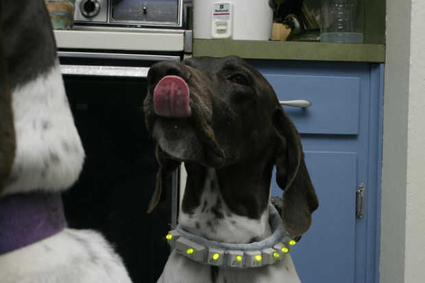 mi perro va una operación al final de la semana, y ella no hace bien con el "cono de la vergüenza" por 2 razones:1. ella no ve bien - el cono aleteo alrededor de su cara le asusta2. ella es corta - se hace el estándar e-collar para perros con pa