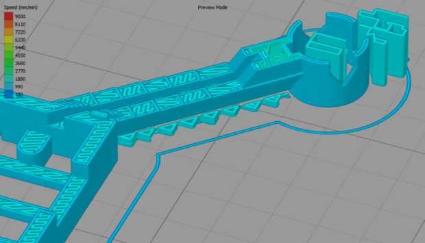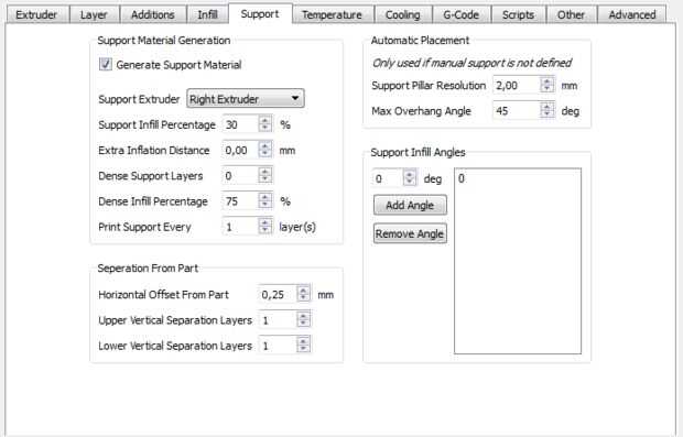 Para la impresión utilicé una impresora de 4 x de Wanhao duplicadora. It´s similar a makerbot. Para el material del filamento elijo PLA porque it´s más fácil de usar para principiantes. Si usted quiere una construcción más robusta, mejor elegir un material diferente. Para rebanar software uso Simplify3D, muy fácil de usar y crea muy buenas impresiones. Cuesta un poco de dinero pero it´s vale la pena al final. Manual define la estructura de soporte por ejemplo y encontrar en las imágenes.