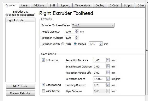 - Ancho extrusión: 0.46 mm