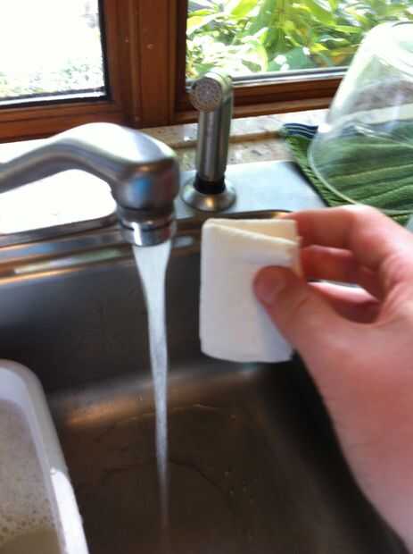 Ahora, toma el extremo doblado de la toalla de papel y ponerlo bajo el chorro de agua durante 1-3 segundos.