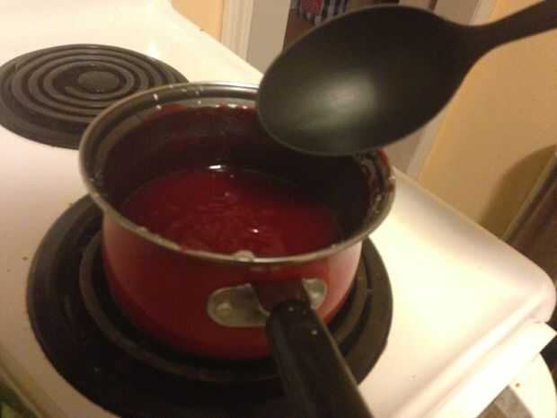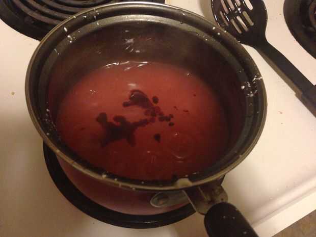 Las instrucciones que leí dice que poner en dos gotas de colorante rojo, que hizo este color raro pinky que me gustó mucho así que tomé en una mentalidad de todo o nada y arroja a chorros una tonelada de alimentos para colorear en la salsa que le dio el color rojo intenso que tenía cuando vertido, pero os animo a probar cualquier color usted desea , o no hay color si eso es lo que usted prefiere.