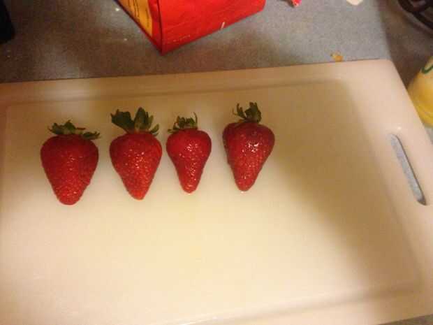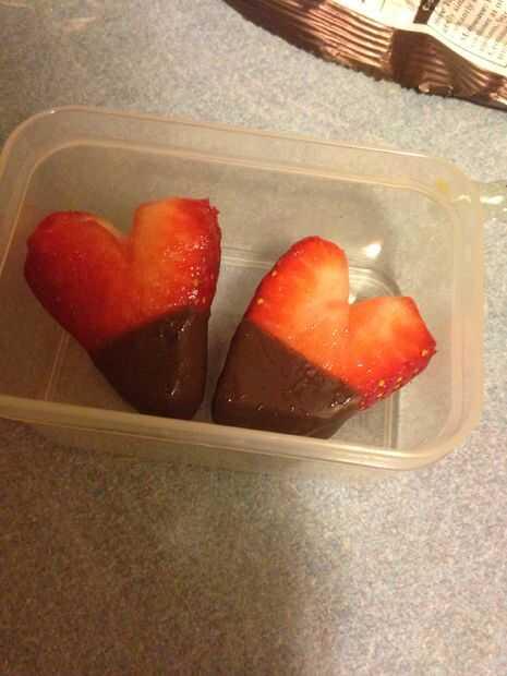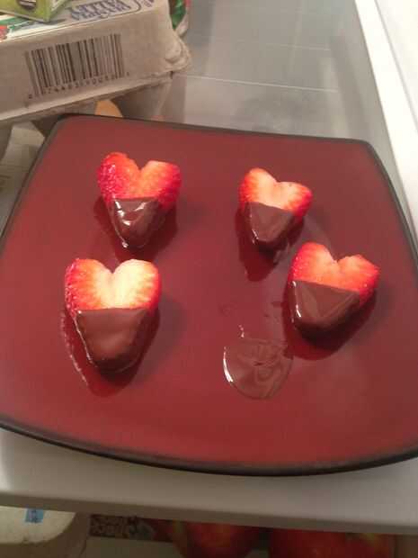 Dejar las fresas en un plato en la nevera para endurecer y luego póngalos en el recipiente que tienes para ellos.