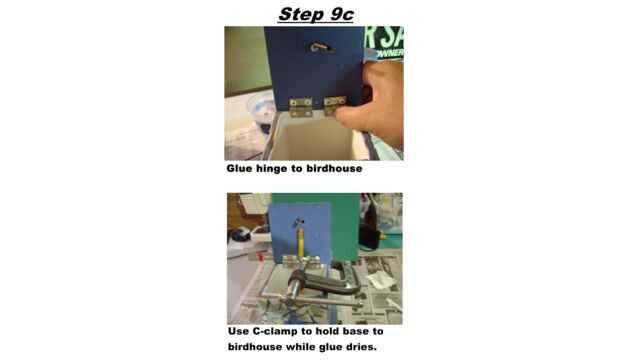Pegar el otro lado de la bisagra en el interior pared de la pajarera. La única pared que era lo suficientemente gruesa como para atornillar a era la pared frontal. Por lo tanto, necesitaba pegar la bisagra en su lugar.