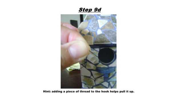 Usted debe ser capaz de manipular el gancho de resorte en el tornillo superior del agujero del pájaro para vaciar nidos viejos. Pueden requerir pinzas si tus dedos no son lo suficientemente flexibles. Otra forma es un trozo de hilo en el gancho del lazo. Esta le ayuda a tirar para arriba. Si usted puede alcanzar el hilo de rosca entonces se puede también utilizar para sacar el gancho. Podría dejar el hilo allí y espero que el ave no lo utilice para su nido. : D