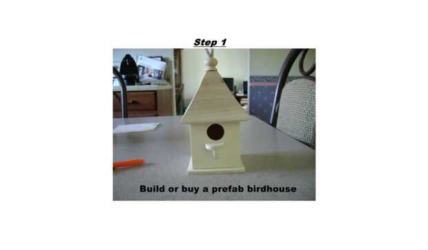 me hubiera gustado construir mi propia casa del pájaro de madera recuperada pero me quedo sin tiempo. Cuando fui a la tienda de Habitat para la humanidad no tienen cualquier madera que era lo suficientemente fina para mi propósito y no tengo tiempo para volver otro día. Por lo tanto, I optó por comprar una casa barata en la tienda de dólar y modificarlo para ser hábitat agradable.