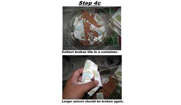 Azulejo roto tienda en recipientes ya que los bordes están muy afilados.
