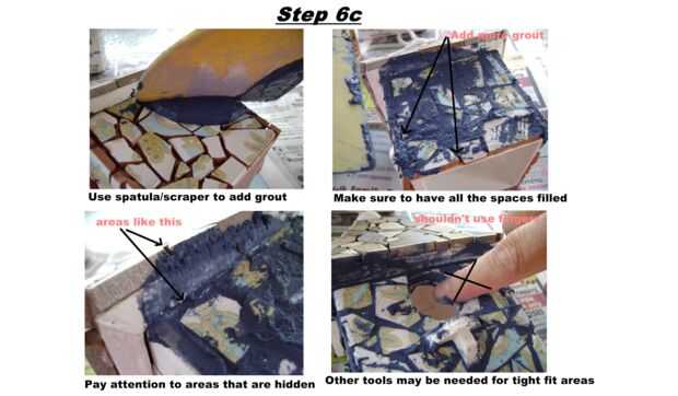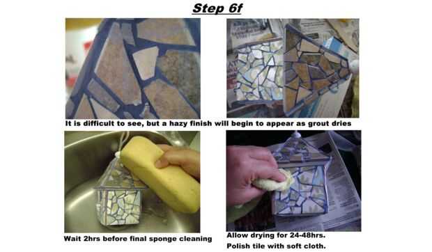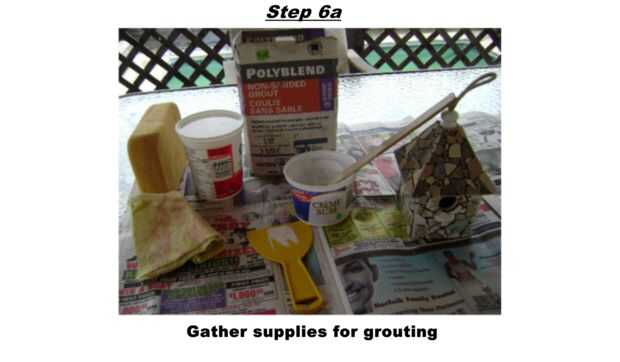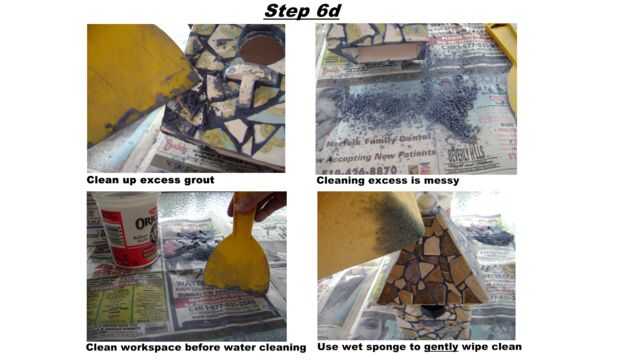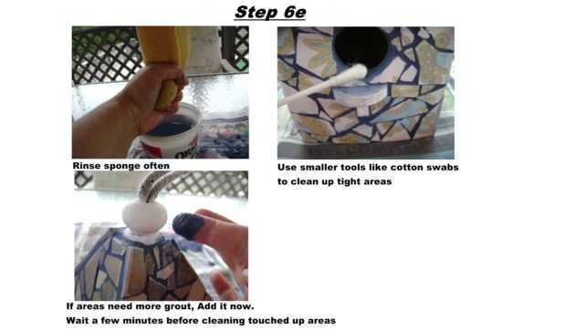 Como el cemento comienza a secarse notarás una neblina en su azulejo. Dejarlo solo. Deje que la lechada se seque un mínimo de 2 horas antes de dar su pajarera un final Limpie con una esponja limpia.