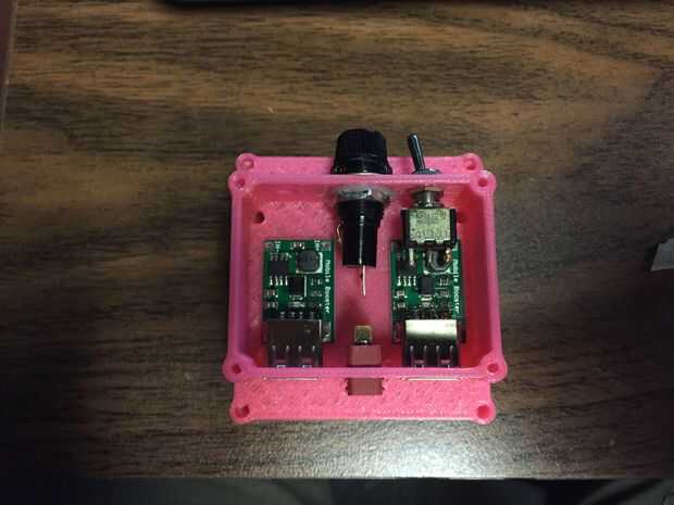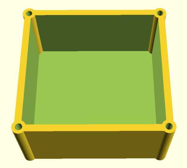 Un cuadro rápido modelado en OpenScad y tuve el inicio de una célula de energía. Hicieron una tapa plana y luego una caja un poco más pequeña para la electrónica.