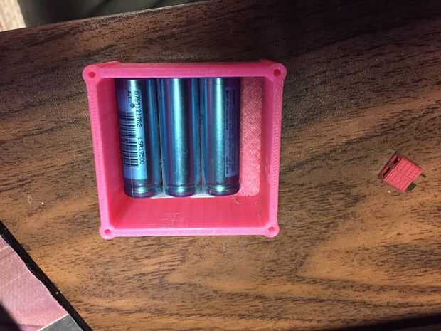 Tenía una vieja batería del ordenador portátil con un montón de 17500 células en él. El paquete fue calificado en 4400 maH. Internamente tenía las células en paralelo en grupos de tres. Tanto como odio tener células en paralelo decidí poner seis de ellas en una caja. Estaban emparejada de fábrica y estaban muy cercanas en el voltaje en voltios 4.09 y 4.10. Me daría 8800 maH. Debe ejecutar mi modelo de pi A todo el día.