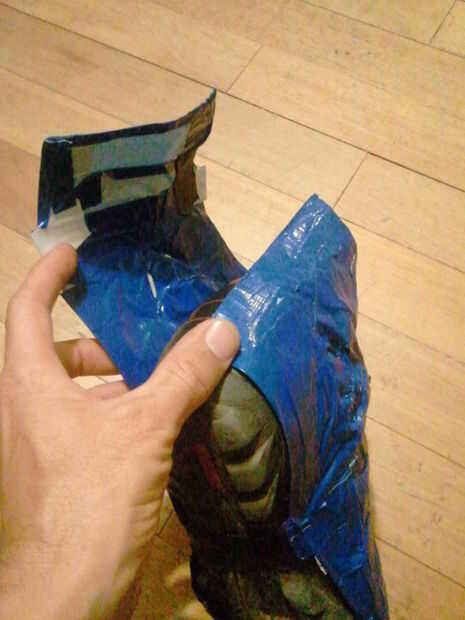 Esta es la tapa trasera como se verá. Hay desnuda cinta para pegar al otro lado del zapato. Le podría gusta esta con velcro, broches de presión o incluso una cremallera pero esta es mi forma de bajo esfuerzo de hacer este trabajo.