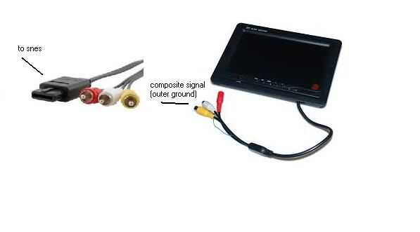 Pantalla - la pantalla que se utilizó es un ordinario 7" compuesto monitor tft lcd pantalla. Esto puede simplemente conectarse a la salida de vídeo compuesta de la Super Nintendo.