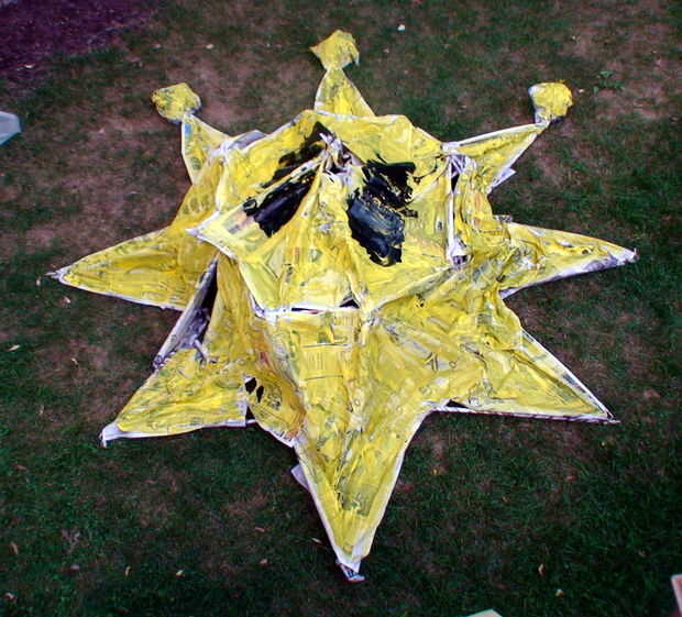 Como he mencionado anteriormente, pintura al Temple moje el periódico. Éste no sólo lo hace más débil, pero también mucho más pesado! Usted puede ver en las fotos que, incluso con un poste central, todo era una brisa tiesa de colapso.