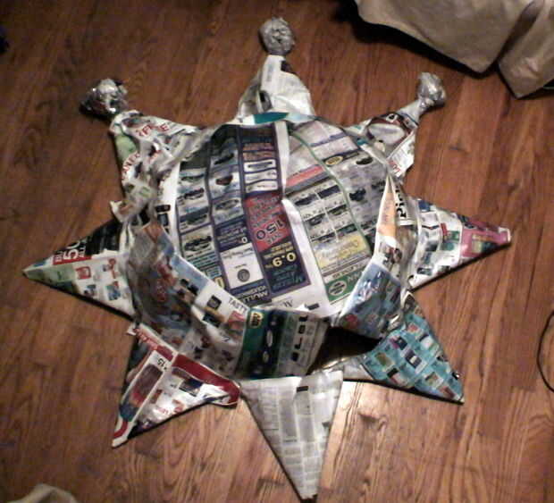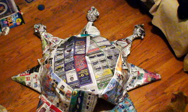 Asegúrese de cinta hacia abajo la piel bien. Superposición es fina. Si eres realmente ambicioso y sus hijos son muy pacientes, no dude utilizar alguna pasta en esto para hacer una cubierta de papel maché. Usted se sentirá orgulloso mientras los niños esperan en lágrimas.