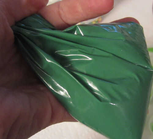 Tomar una taza de 1/4 de verde candy melts y coloque en una bolsa de plástico. Microondas por 20 segundos, moosh alrededor y repita hasta que se derritan completamente.