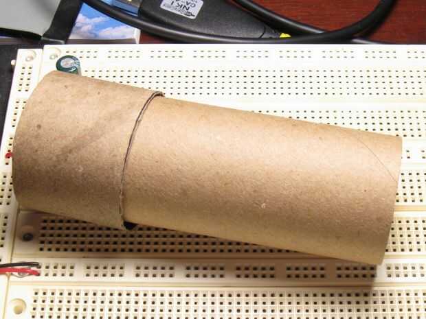 hice un recinto para el circuito que se asemeja a los tubos de deformación en Super Mario Bros de tubos de cartón. El tubo más grande es de un rollo de papel higiénico y creo que el se queda de un rollo de plástico de la hoja. Para decorar la caja escala, imprimir y pegar una imagen de la pipa del juego. Para escalar la imagen correctamente primero partirla en dos imágenes separadas. Luego escala, conservando la relación de aspecto, la imagen de la parte inferior de la tubería a ser 2,5 pulgadas de ancho porque es la mitad de la circunferencia del tubo de cartón más pequeño. A continuación, realiza la misma escala a la parte superior de la tubería y horizontalmente la había estirada a un ancho de 2,75 pulgadas, que es la mitad de la circunferencia del tubo de cartón más grande. Después de eso, puse ambas imágenes a escala en una sola imagen para que sea más fácil de imprimir. He dejado algunos espacios en blanco entre ellos cortando las piezas más fáciles de hacer. Por último, imprime dos copias de la imagen, uno por cada lado de una sola hoja de papel; luego cortar y pegar en tubos de cartón cortados a la longitud adecuada.