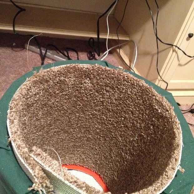 Ahora tome su alfombra y colocar dentro del tubo, para obtener una medición aproximada cuánto usted necesita. Cortar la alfombra para que el tamaño del bruto. Volver a poner la alfombra en pegamento caliente allí en lugar y cortar el exceso de material cuando se hace.