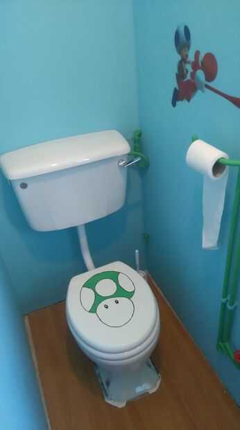 Contamos con dos asientos de inodoro de paso instalados para permitir que los niños pequeños (de que) más adelante y cualquier persona con un fondo pequeño para sentarse. Lamentablemente mientras el vapor de las paredes papel dejé la vara en el asiento y al instante "sopló" la d.m.
