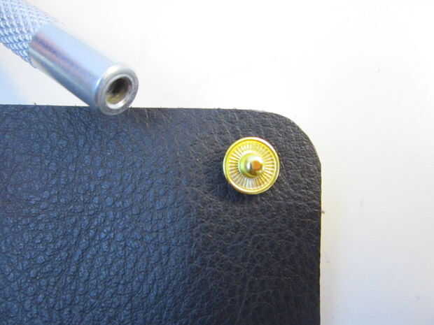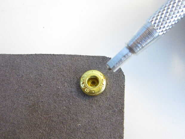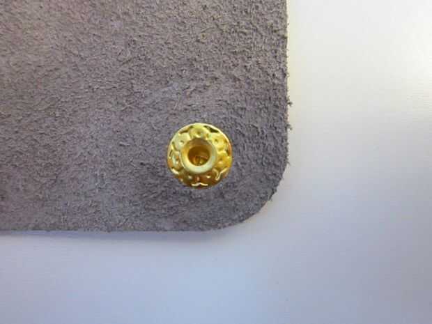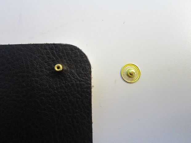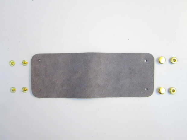 Inserte el ojal y stud el brazalete de cuero. El perno debe estar en el lado derecho de la tela.