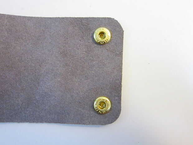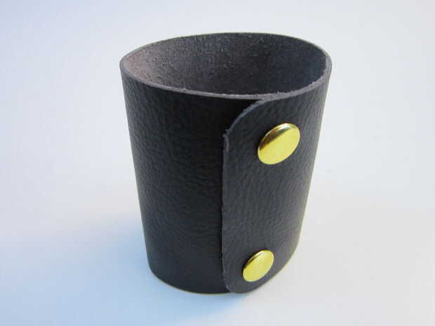 Inserte la tapa y toma el brazalete de cuero. La tapa debe estar en el lado derecho del cuero.