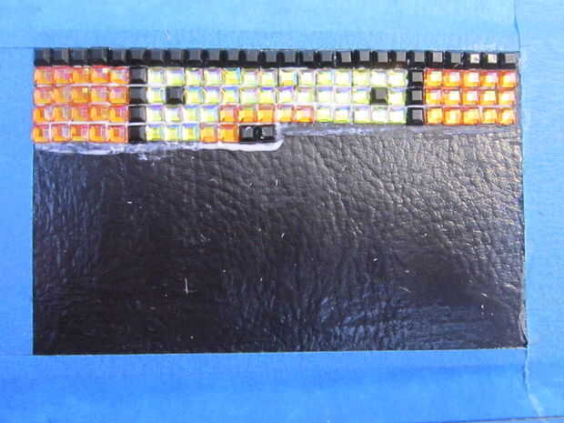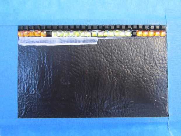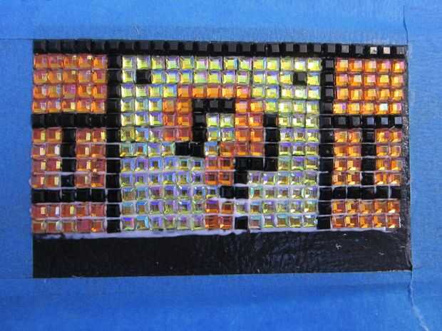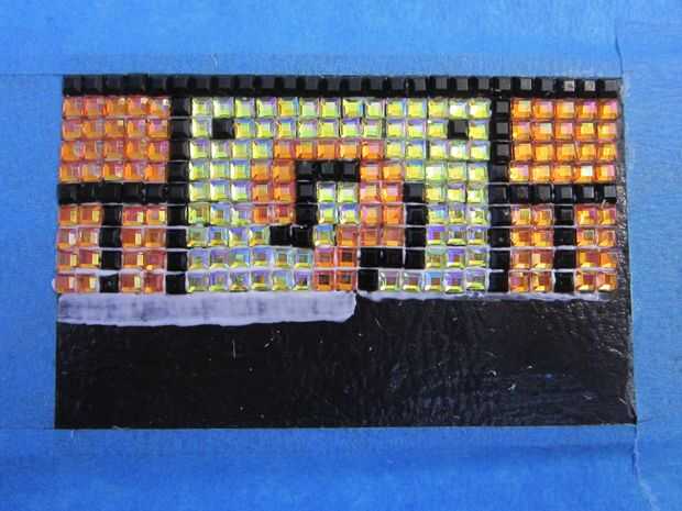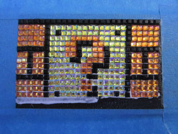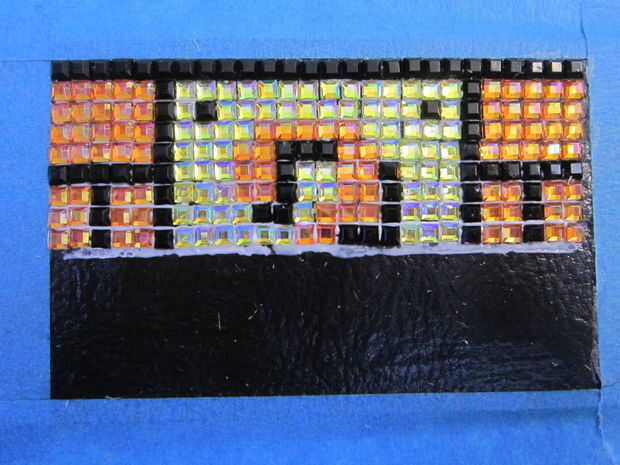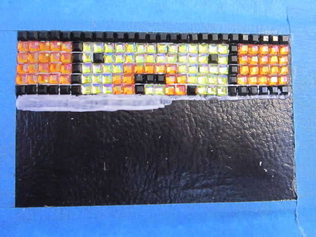Cuando el pegamento esté seco, puede comenzar a agregar las piedras. Utilicé un pincel pequeño y aplica el pegamento en filas, esperando unos segundos para el pegamento para obtener pegajoso y luego añadiendo los rhinestones. Desea aplicarlos con cierta presión para que obtener un buen bono.