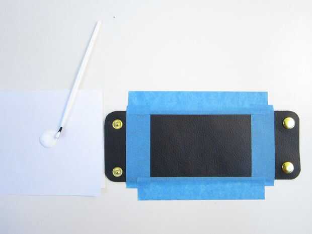 Apliqué a 1 capa de cola a toda la zona, he usado una cantidad pendiente, no demasiado gruesa o fina. Usé esta primera capa como una base para que el pegamento se empape en la piel, que forma cuando se aplica la capa 2 está adhiriendo a la cola y no la piel que me dio un enlace seguro para los rhinestones.