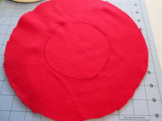 Utilizando uno de los círculos de diámetro 11 once pulgadas, centro de una placa de 5 pulgadas (o cualquier otro elemento circular) para trazar alrededor.