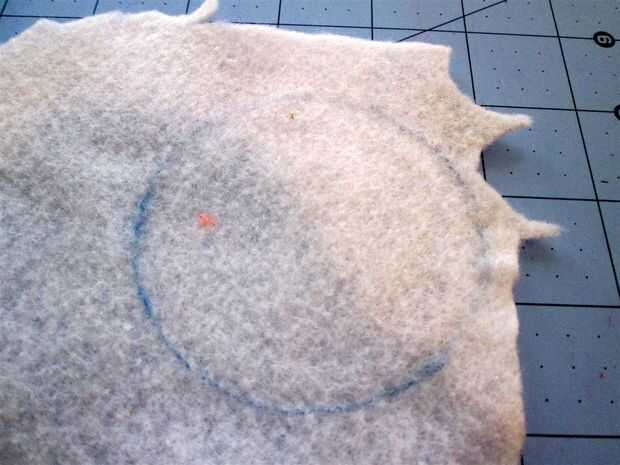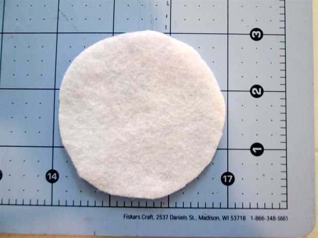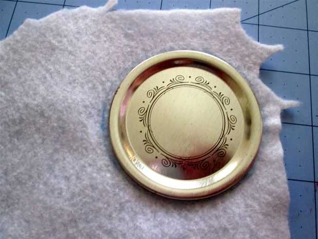 Medí el interior pieza de una tapa de tarro de masón para obtener un círculo de tamaño de 2-3/4 de pulgada en un pedazo blanco de fieltro.