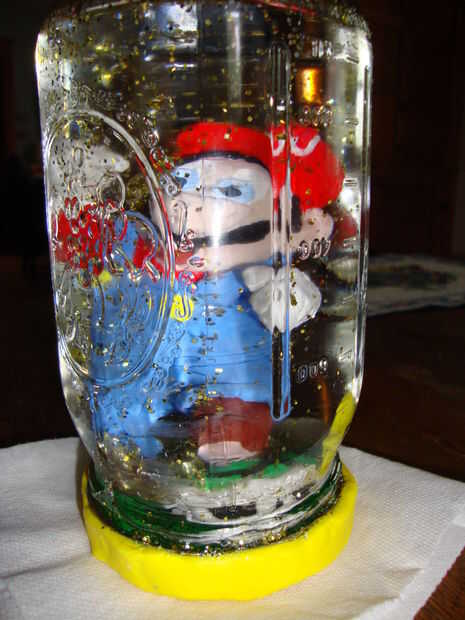Actualización: me mudé a este Mario en un frasco transparente por lo que pude verlo mejor, me siento un tarro reciclado sería bien, pero para el tema en este ' capaz siento el frasco transparente es mejor.