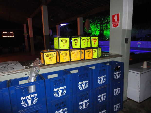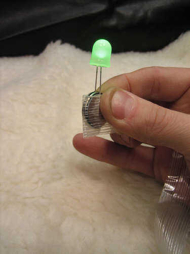 Poner dentro de la caja con algún alambre y cinta adhesiva un LED en una batería