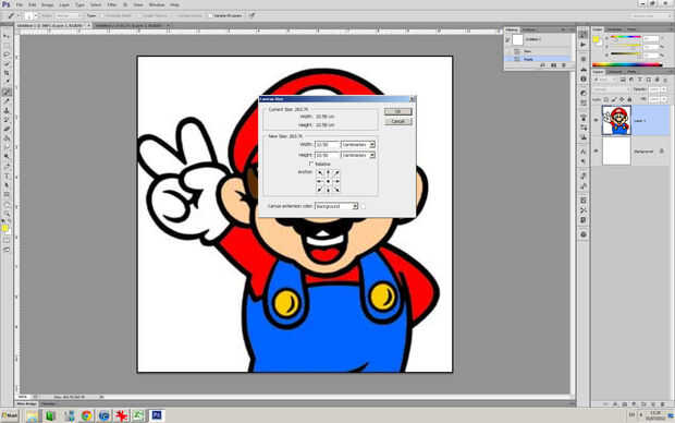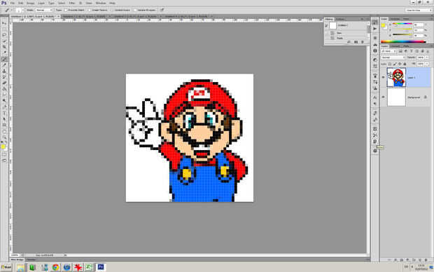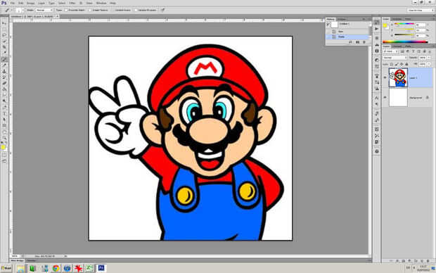 Como se puede ver en las imágenes yo eliminar las patillas de mario, pintado el fondo en negro y tuve que rehacer la M en su sombrero - es prueba y error hasta que hacerlo bien