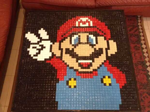 esta tabla es una versión de un artículo bueno que tuvo más de 100 horas para producir. Saltar e imprimí imágenes de más de 300 cosas de Super Mario Bros 3 y recorto pixel por pixel. Luego pegado a una tabla (sí tiene patas) después de la pintura en