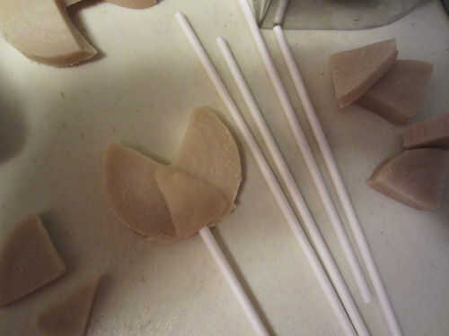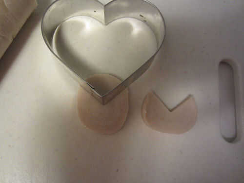 El cortador de la galleta, o un cuchillo, pero un cortador de galletas es más fácil – y corte hacia fuera una cuña desde el círculo de masa de galleta. Utilicé un cortador de galletas de corazón.