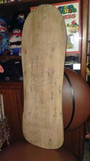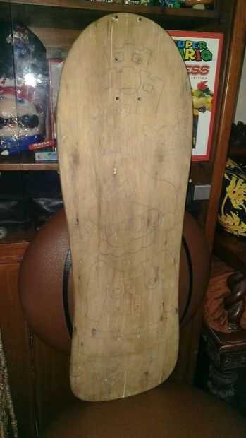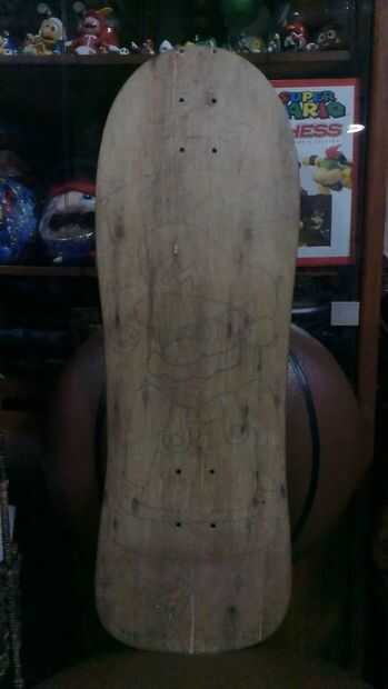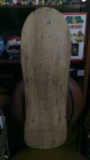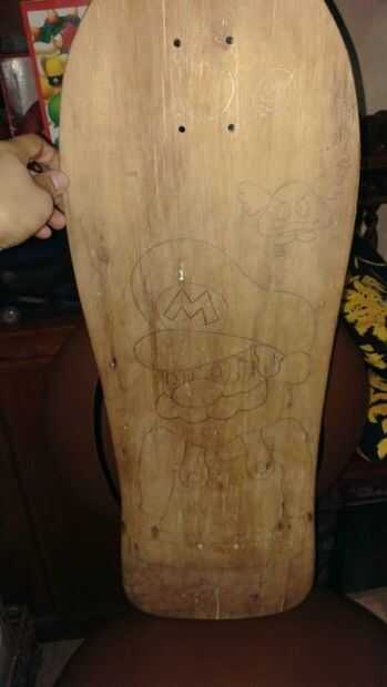 Encontré un viejo patín. Quité todos los camiones y las ruedas. Afortunadamente, el diseño fue sólo la etiqueta engomada así que era fácil de pelar para el revestimiento de madera y luego procedí a dibujar mi diseño en la superficie de madera...