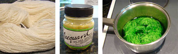 Si morir con Kool Aid, disolver algunos Kool Aid en un pote de agua (la cantidad de Kool Aid que utilice determinará cómo saturado será el color), sumergir el hilado y calentar hasta que el agua es clara (aproximadamente media hora).
