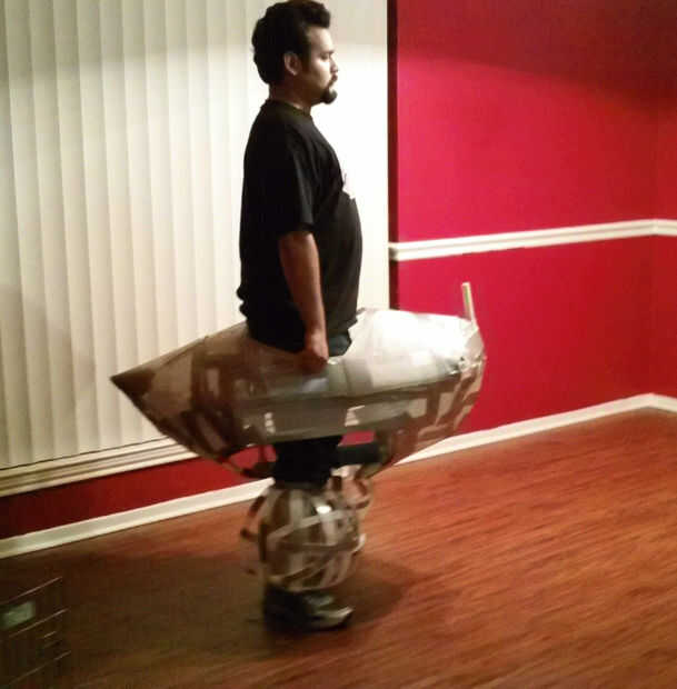 Yoshi las piernas están hechas de cinta de lona y el conducto plástico. Esta forma de paso 1 no funcionaba, así que su regreso a la mesa de dibujo...